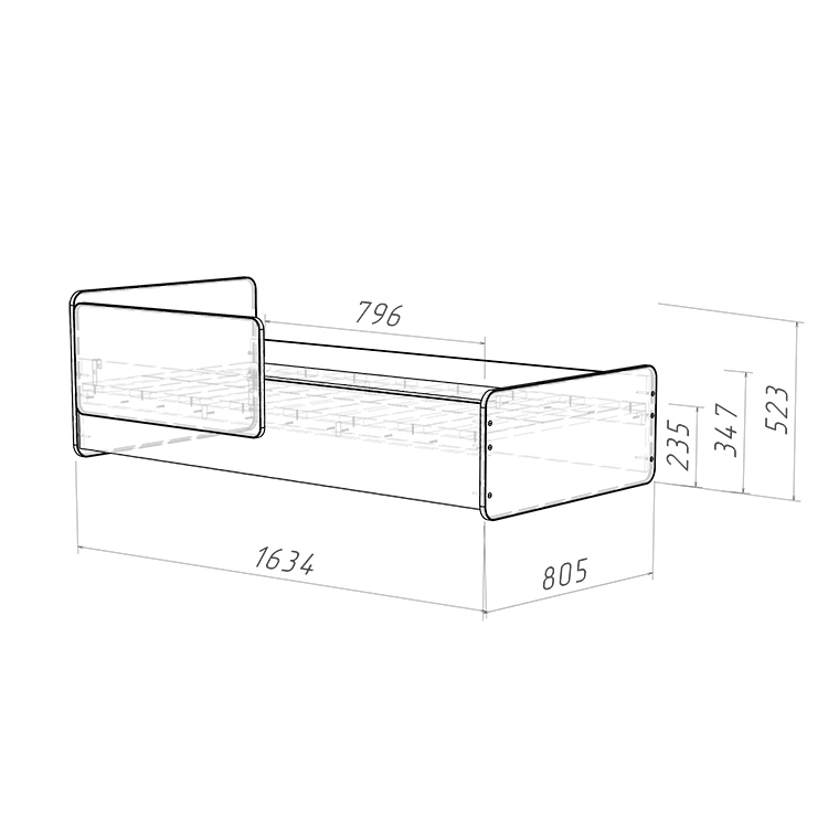 2. Защита от травм: Кровать не имеет острых углов и обработана мягким противоударным кантом, что предотвращает возможные травмы и делает использование кровати безопасным для детей.