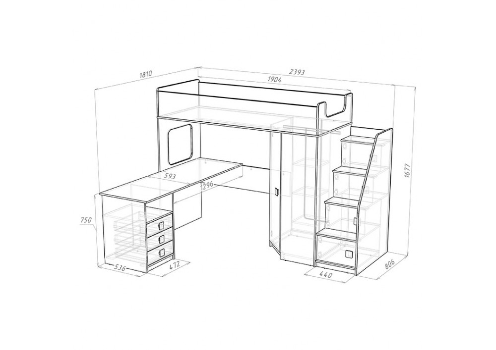 Учебная зона со столом под спальным местом открывает возможности для письменных работ, а также здесь удобно расположить ноутбук.