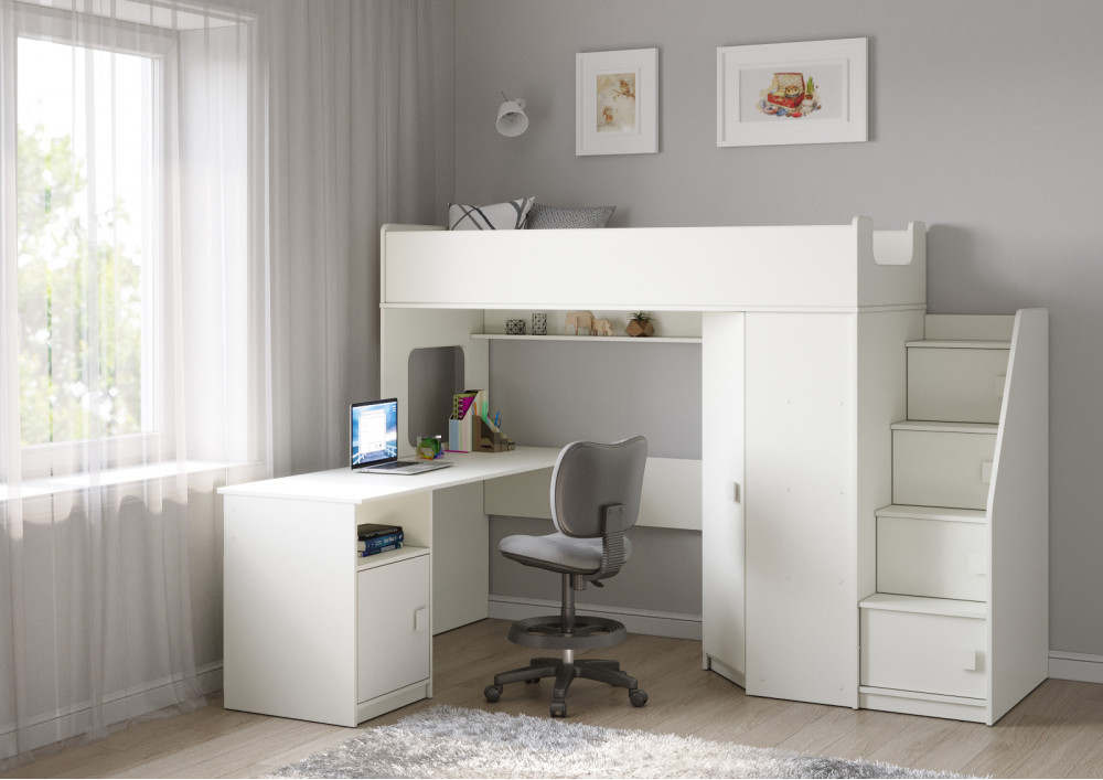 Учебная зона со столом под спальным местом открывает возможности для письменных работ,а также здесь удобно расположить ноутбук.