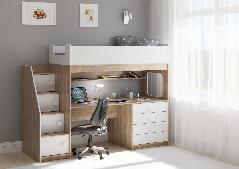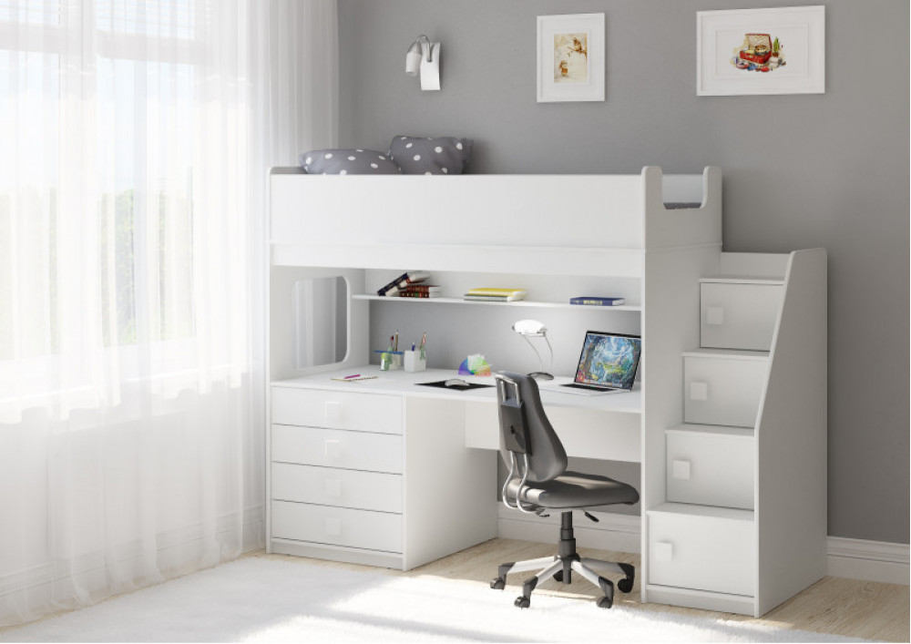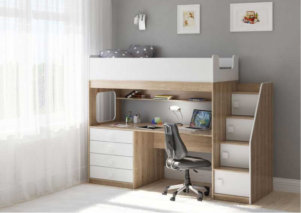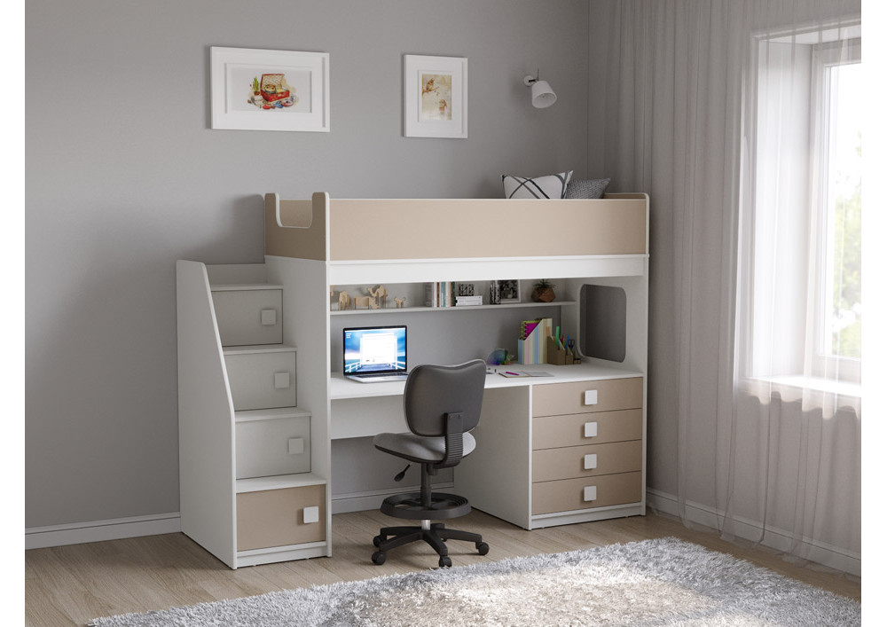 Учебная зона со столом под спальным местом открывает возможности для письменных работ,а также здесь удобно расположить ноутбук.