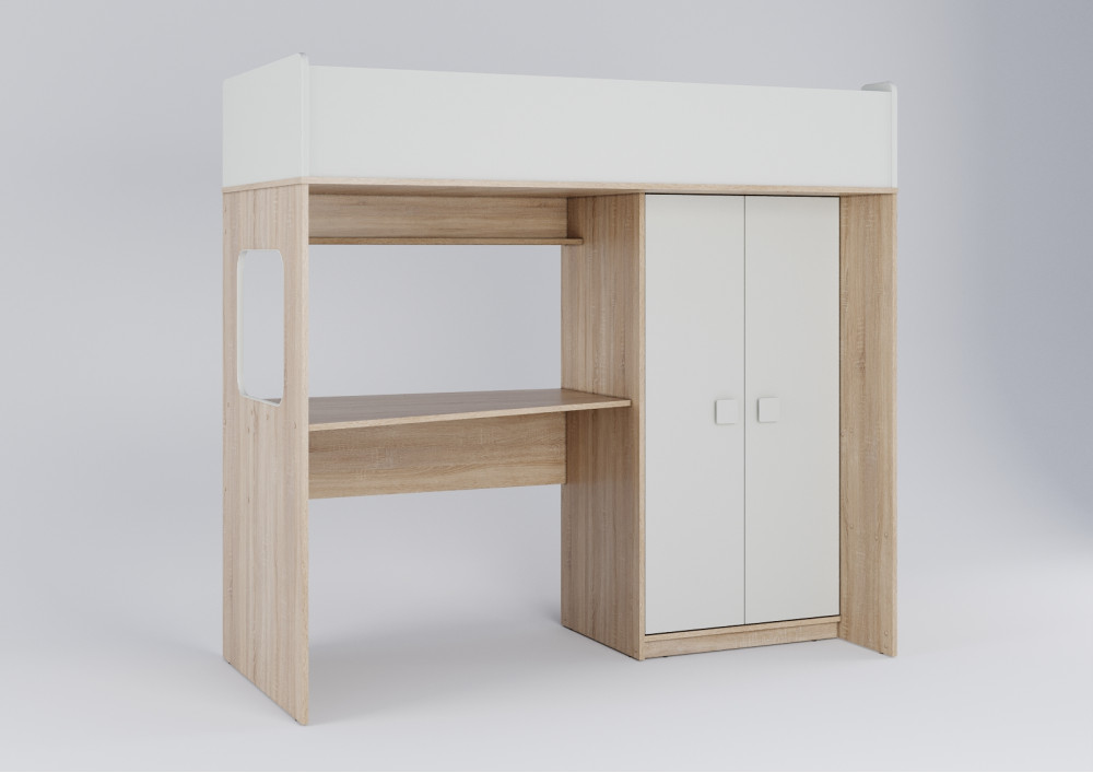 Учебная зона со столом под спальным местом открывает возможности для письменных работ,а также здесь удобно расположить ноутбук.