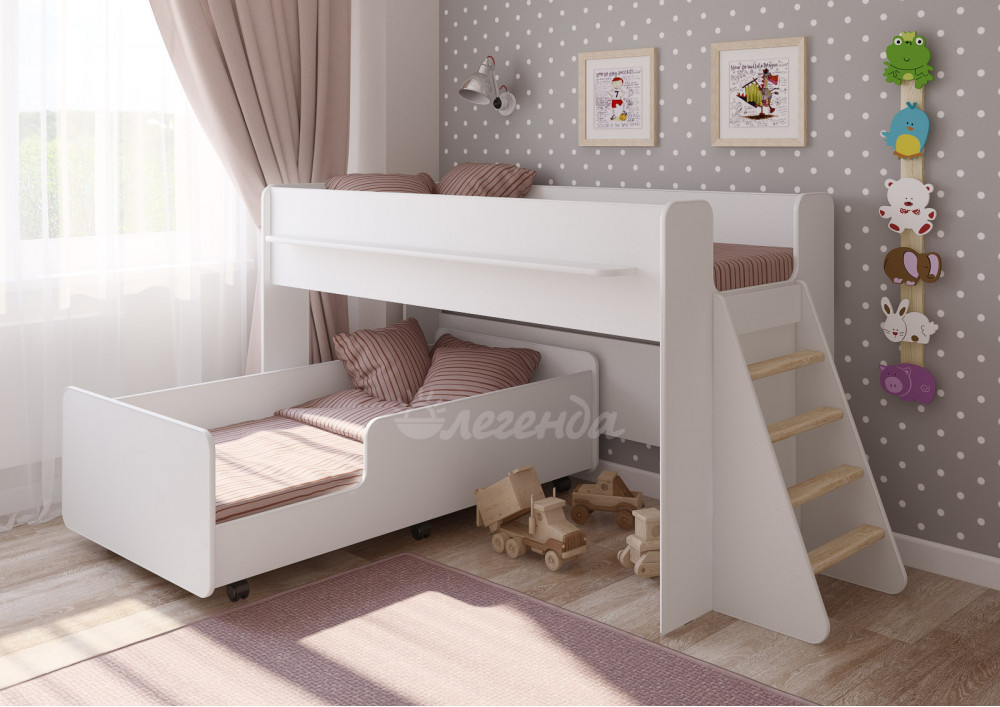 Детская выкатная кровать Легенда 23.3 белая - замечательный комплект для двоих детей.